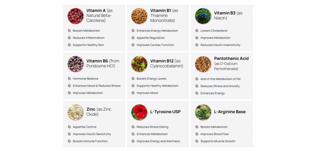 LeptiCell is formulated with a potent blend of vitamins, minerals, and amino acids designed to support metabolism, hormone balance, appetite control, and overall wellness. Here’s a closer look at its key ingredients: